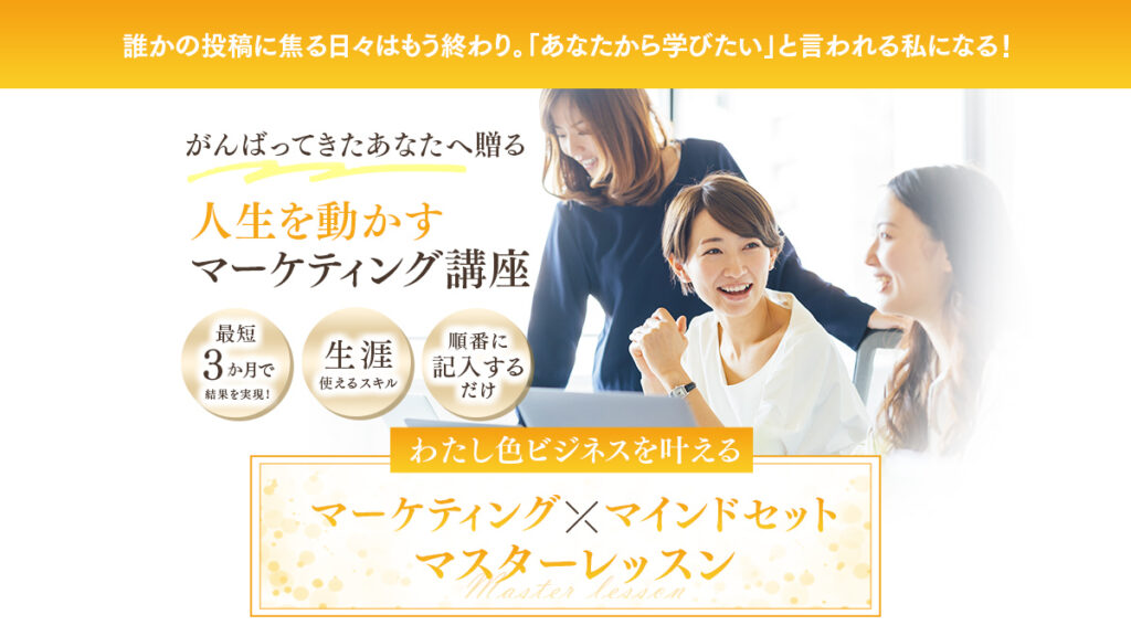 わたビズでは、 マーケティングの「やり方」と マインドセットの「在り方」を 同時に整える3ヶ月間で、 テンプレートではなく、 あなたの想いから生まれる 「一生使える、わたし色の型」を習得できます。